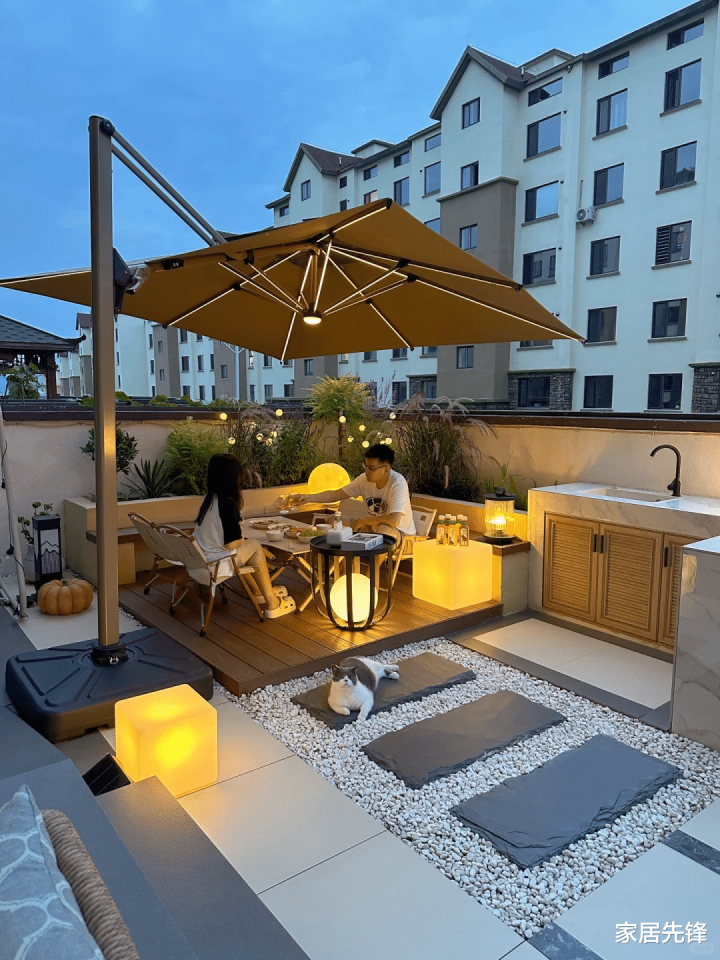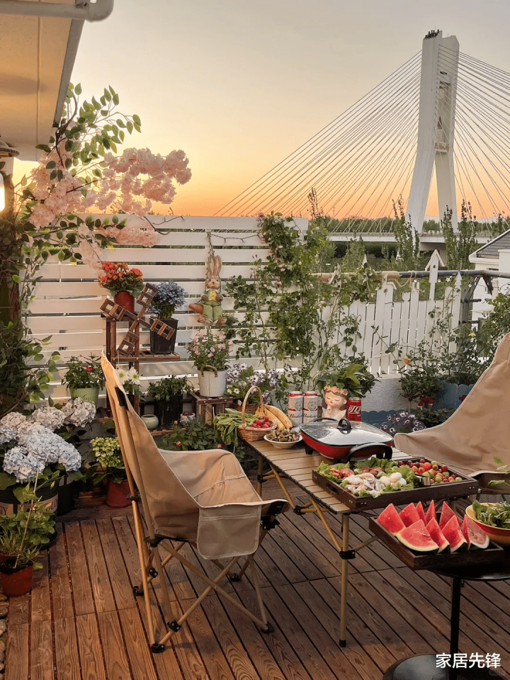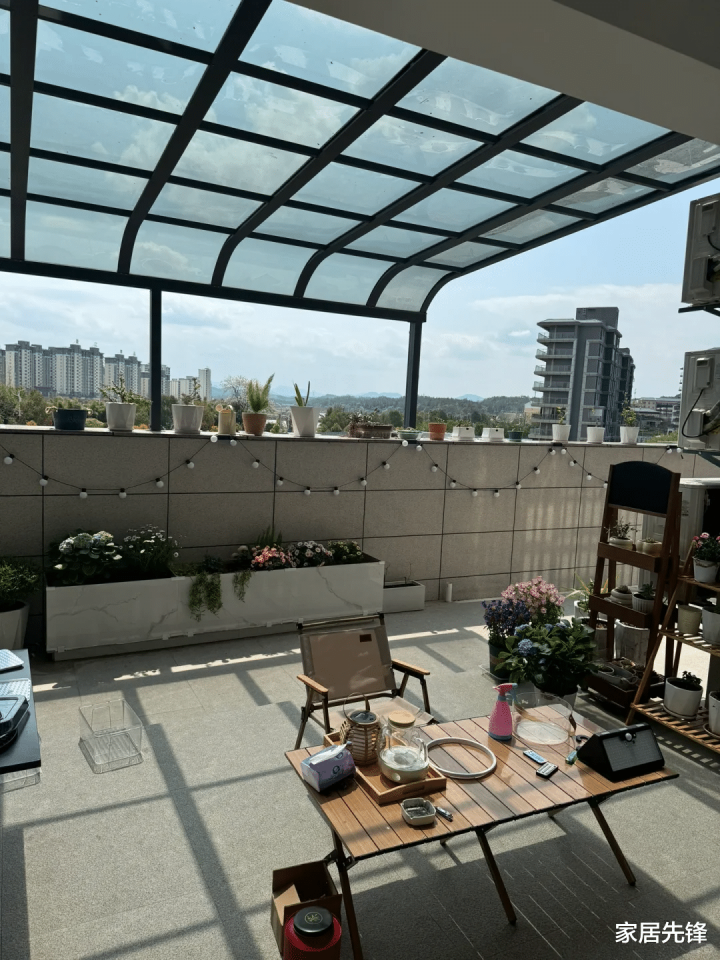 对于露台,大家可以改造成空中花园,在上面种种花养养草,跟朋友一起周末聚个餐都是非常不错的。